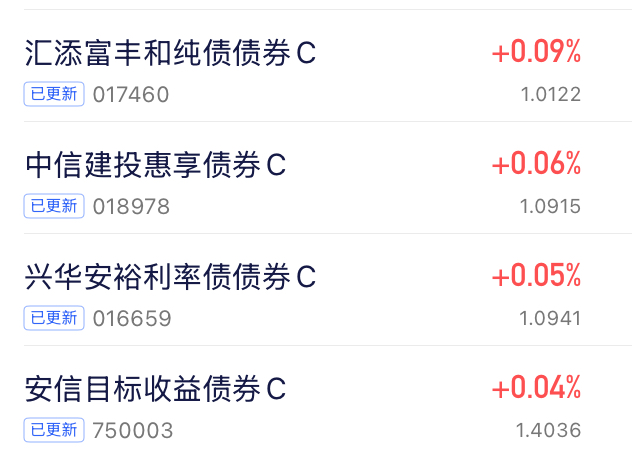 今天债券还不不错,只是利率债有些分化,信用债相对比较稳定,不过近期债券整体行情有所回暖,感觉有些基爆发力还是比较强的,我们一起来看今晚的净值情况吧: