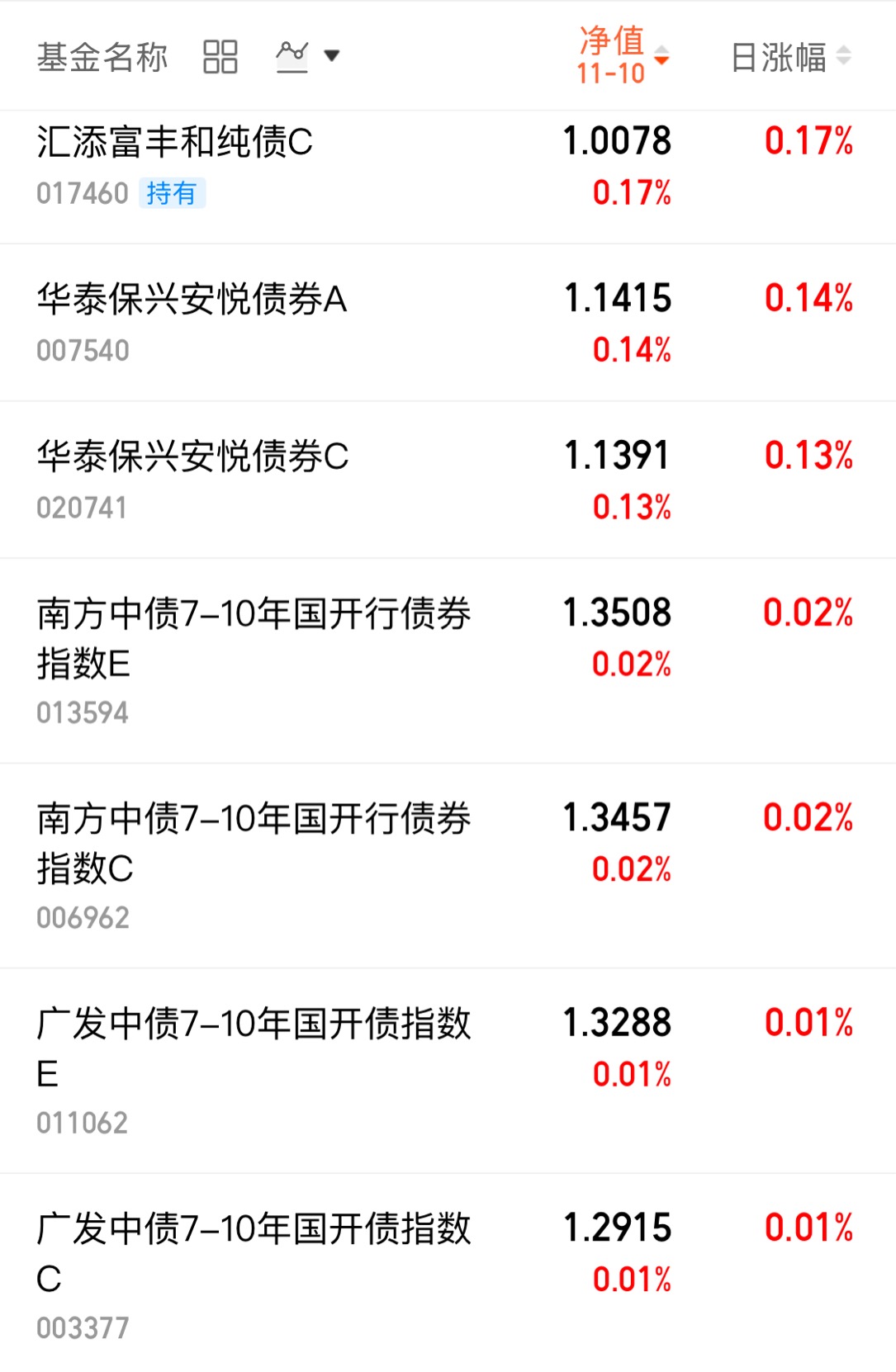 11月10日报道:汇添富丰和纯债C今日收17个大蛋!