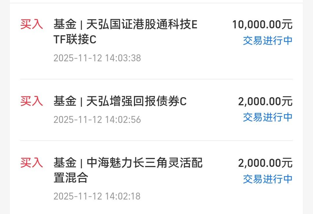 3、$天弘国证港股通科技ETF联接C(OTCFUND|024886)$,买入10000元