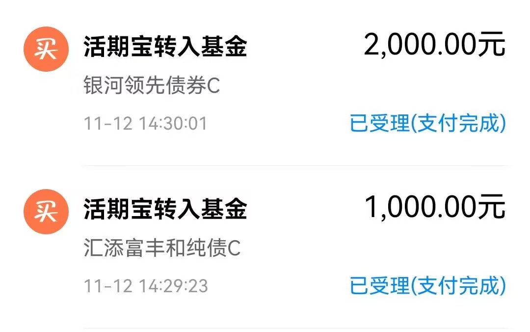 2、$银河领先债券C(OTCFUND|017763)$,买入2000元