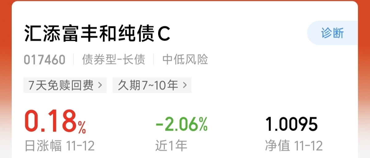 债券市场每天现在是惊喜不断。$汇添富丰和纯债C$ 昨天又是18个大蛋,互联网平台就可以买的30年超长债,聚焦超长债产蛋能力强,做波段那可是首先,妥妥滴华子增强版,今天期待继续创新高。