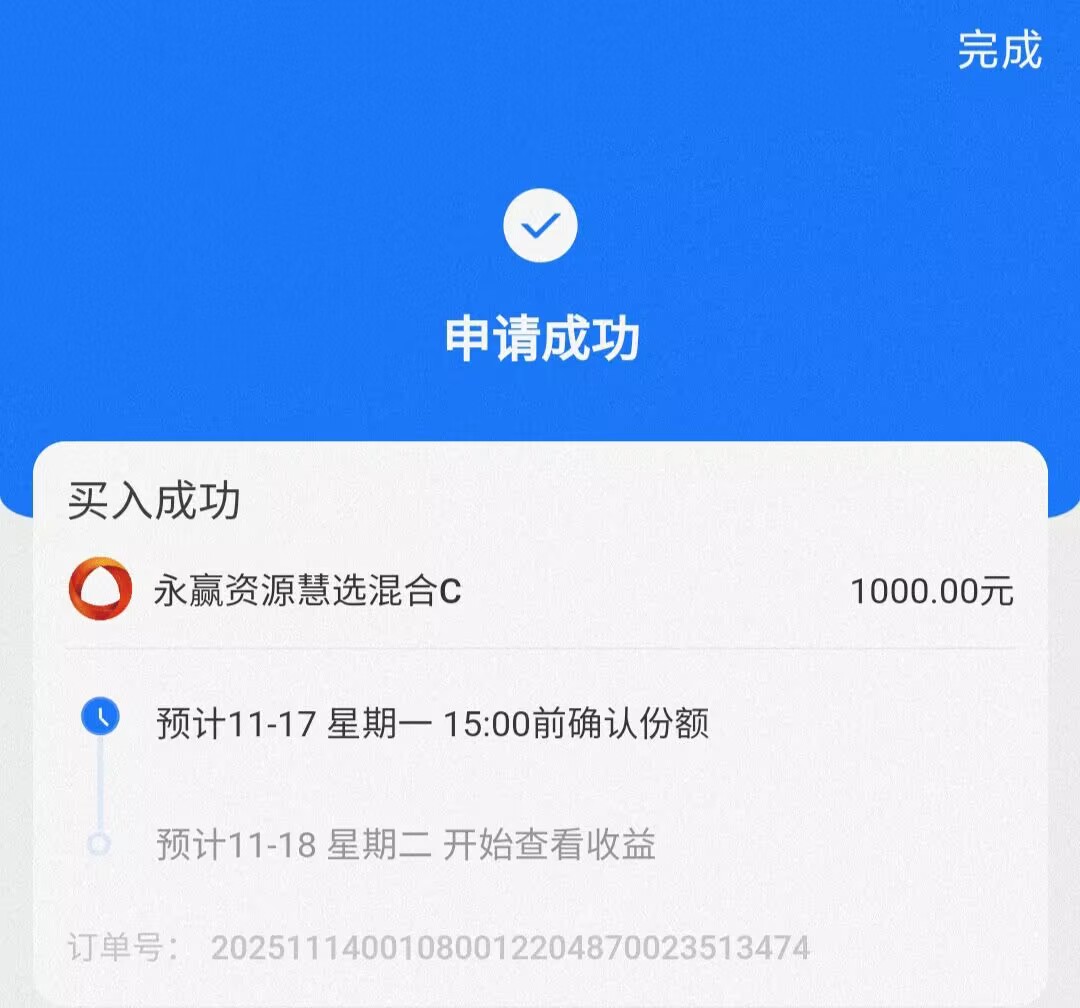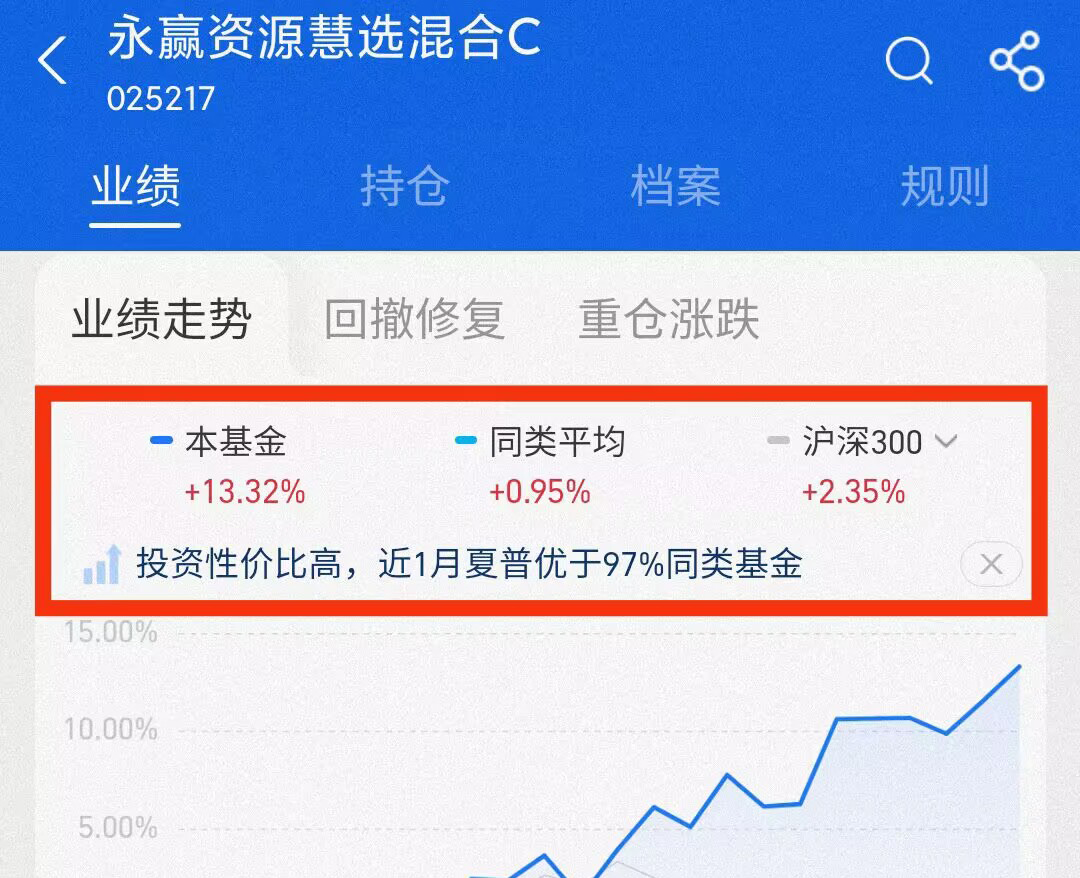 今日买入1000元$永赢资源慧选混合发起C(OTCFUND|025217)$,最近股市走势比较反复,但是仍有一些基金净值不断刷新新高,该基金就是其中一只,聪明的你是否注意到了这支基?到底是什么持仓使得它的净值不断上涨,原来是钢铁+有色,我们知道科技无疑是今年的主线,很多人都在盯着大科技,从而忽略了周期资源,但是最近市场风格高低切换,主力开始进攻其他方向,于是钢铁和有色成为近期的重点板块。而这支成立不久,业绩一直在往上爬,闷声发大财,近一个月大涨13.32%,连续刷新净值新高,今天我先上车一笔再说。