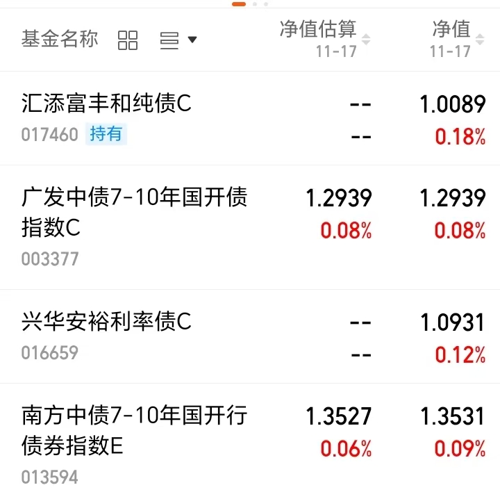 今日债市偏强整理,各年期国债均有所拉升,而长端表现最好。$汇添富丰和纯债C(OTCFUND|017460)$聚焦超长利率债,互联网平台可便捷购买30年国债。央行净投放托底流动性,作为股市对冲好工具,凭借长端债强势收蛋18个,表现不错呢。