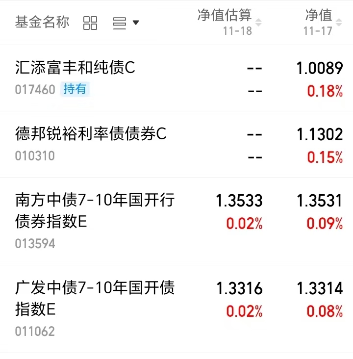 $广发中债7-10年国开债指数E(OTCFUND|011062)$昨天收8个蛋。