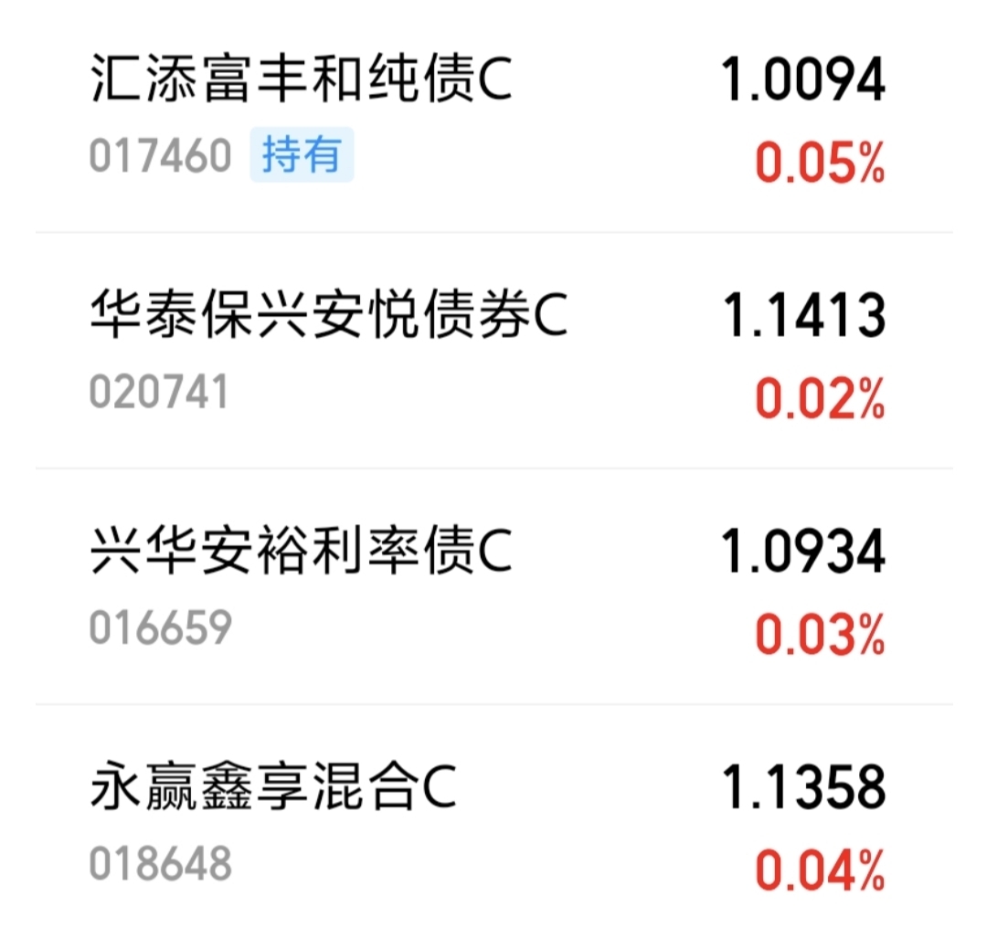 ($兴华安裕利率债A$ OTCFUNDI016659)$今天