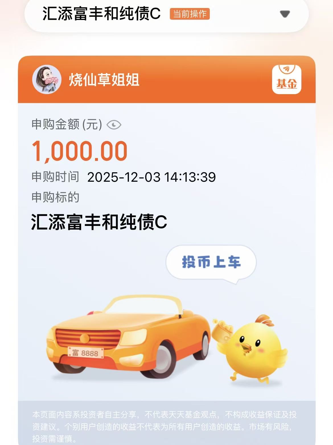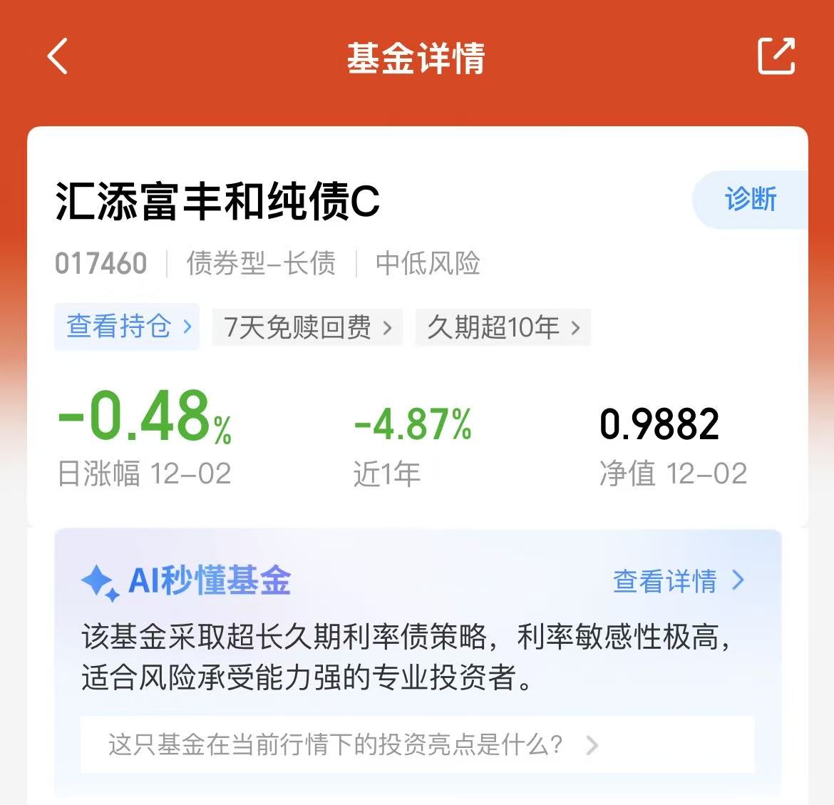 $汇添富丰和纯债C(OTCFUND|017460)$是对标30年超长利率债的,自从转型后,单日的涨幅锐度更高也更强的,弹性也相对大,而且这是7天免赎回的,操作上更加灵活方便,眼下经过震荡调整后,正处于相对低位性价比高,我今天逢低补仓位,提前收集筹码,耐心的等待行情反弹上涨。