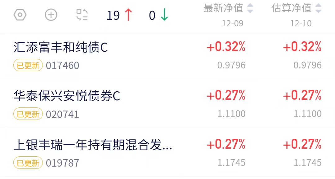今天股市震荡,债市企稳回暖。$汇添富丰和纯债C(OTCFUND|017460)$布局30期超长债,涨超网红华子,我看是股市对冲好工具呢。