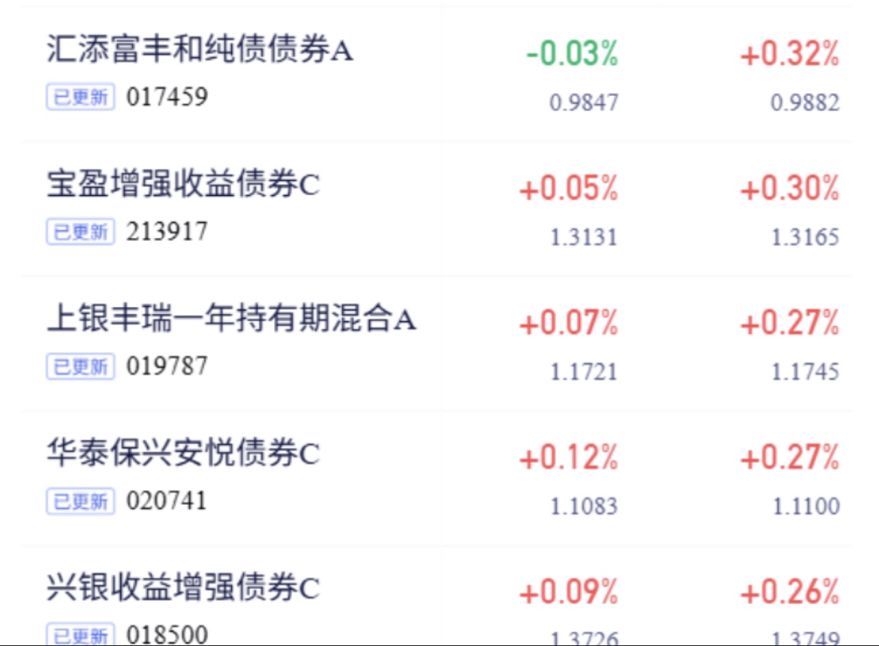 汇添富丰和纯债债券C今天顺利收32个蛋,债市这两天整体情绪明显回暖,利率债收益率继续小幅下行,纯债品种的净值表现也跟着稳稳抬升。