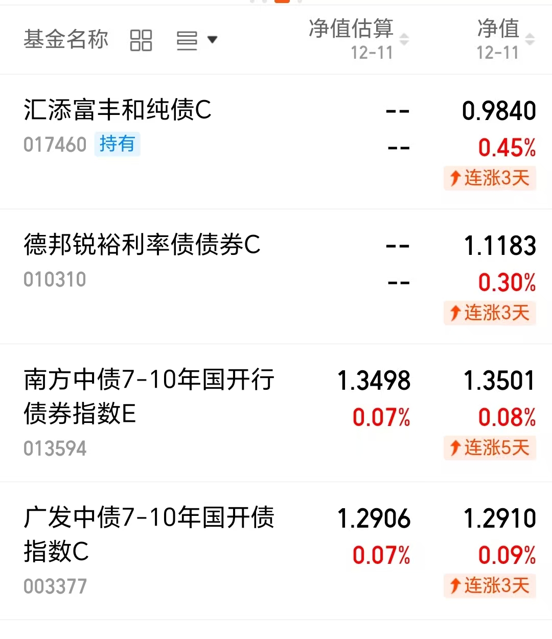 今天债券市场表现不错,利率债市场持续回暖,各类期限国债期货均走高,超长期品种表现亮眼,机构预期年末央行将维持资金相对宽松,我也继续看好债市后续行情啦。聚焦30年超长债的$汇添富丰和纯债C(OTCFUND|017460)$今天收了45个蛋,表现强呢。这个是在互联网就能购买的30年期国债,弹性大,作为债市抄底的工具挺不错的。