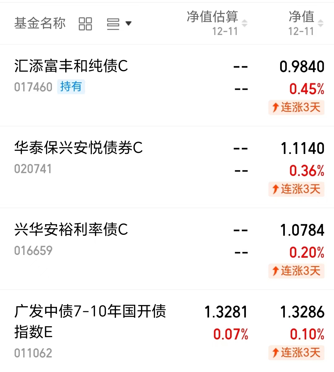 今天债强股弱,债券市场延续回暖势头,利率债三连反弹啦,国债期货全线收涨,市场流动性有望维持平稳态势。华子增强版的$汇添富丰和纯债C(OTCFUND|017460)$ 今天收45个蛋,表现不错,这只聚焦30年期超长债,弹性和锐度比华子更高,震荡市场也是股市对冲的好工具呢。看看今晚收蛋情况: