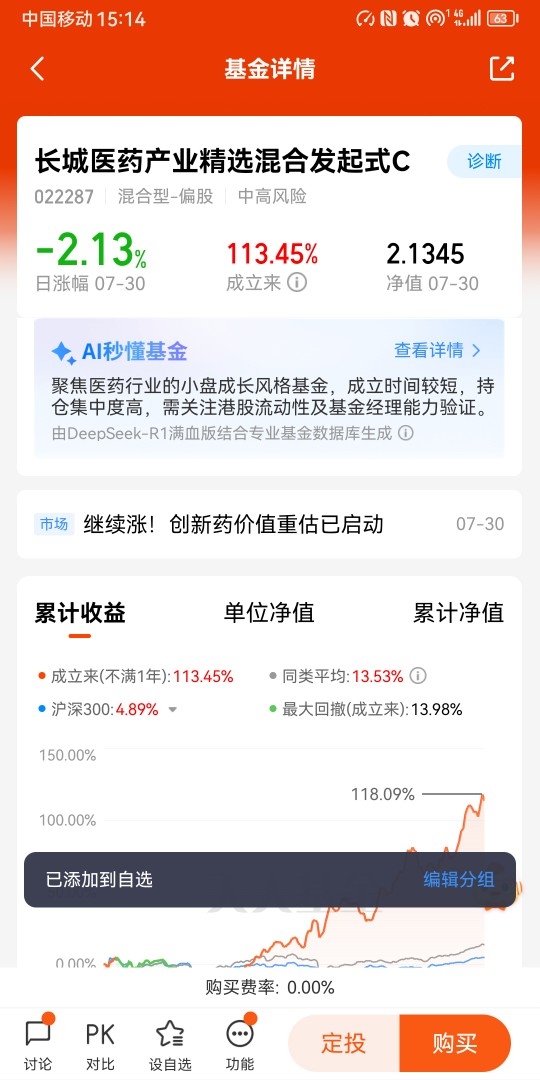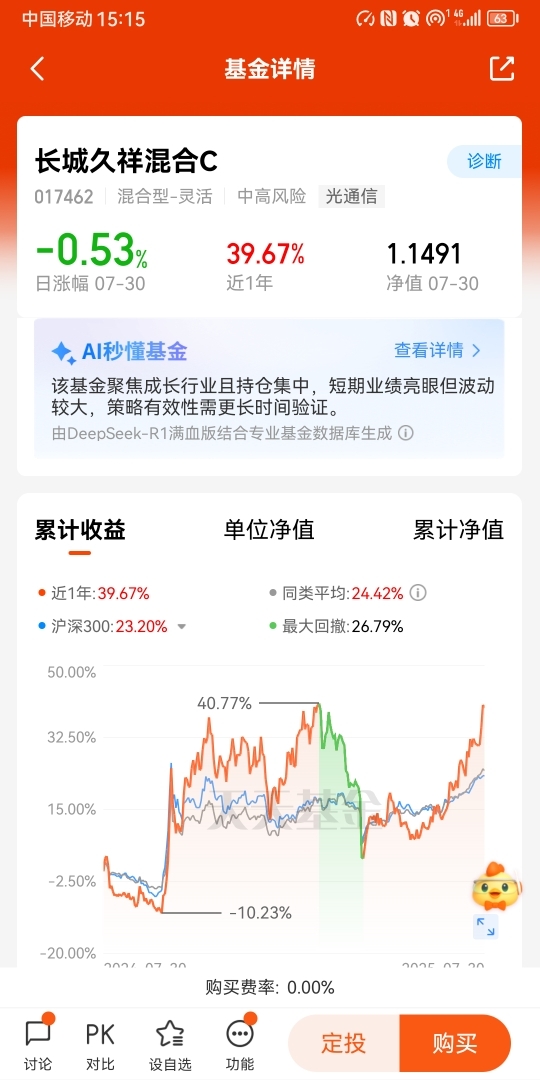 $长城久祥混合C$ 近期表现亮眼,近一年涨超39%!是我们配置游戏和AI板块的好助手!