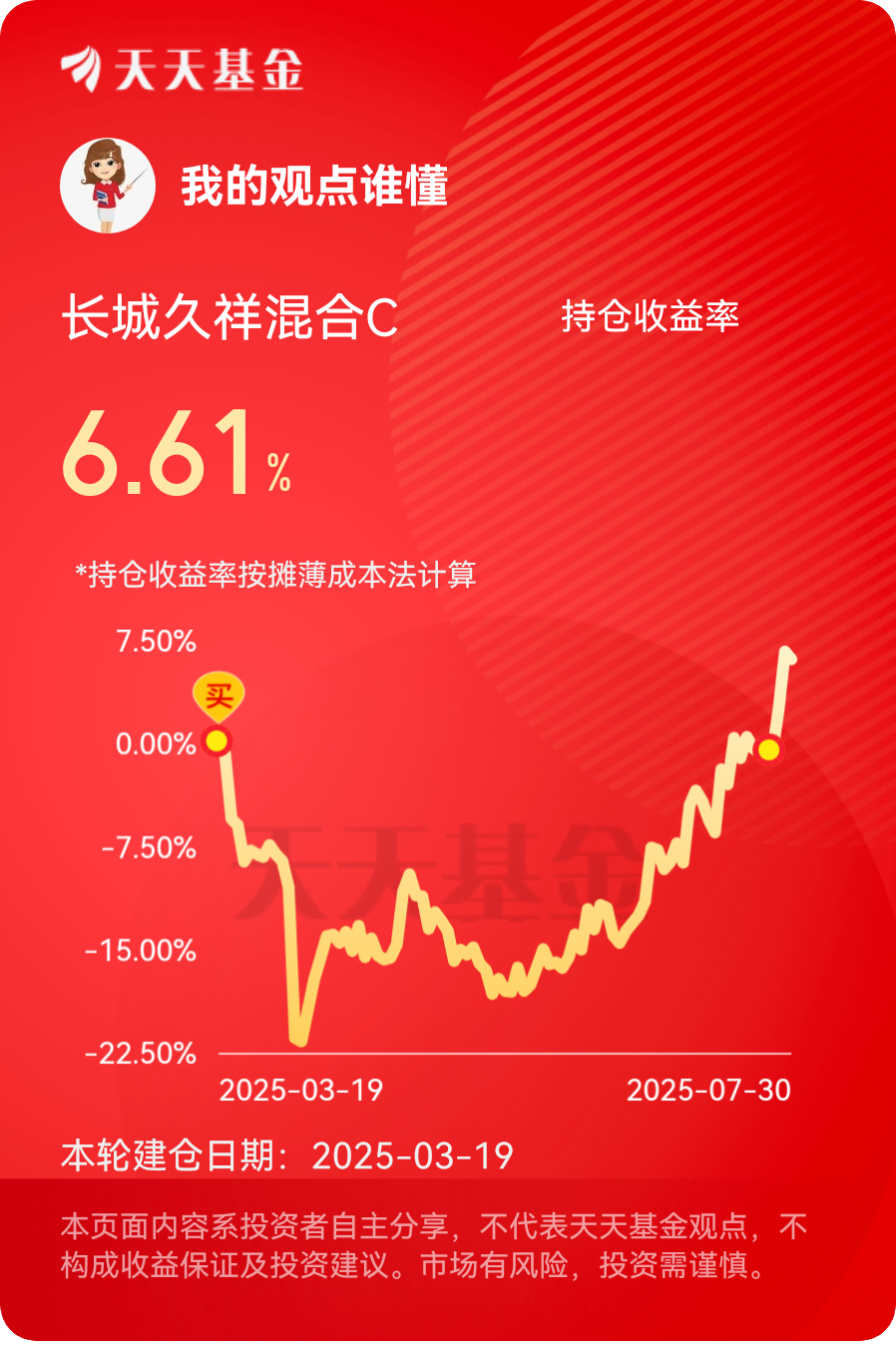 因此我拥抱了长城久祥混合C(基金代码:017462),因为它重点布局的方向就是游戏与算力,持有至今,它给我带来了相当不错的投资体验,它是我心目中的宝藏基金。@长城基金