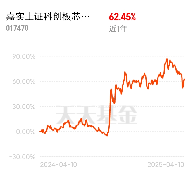 经过了周一的回撤,这几天的市场表现还是很强势的,连续疯狂上行,尤其是科技板块,确实挺给力的,一些相关的产品表现也都挺不错的,$嘉实上证科创板芯片ETF发起联接C$ 就很给力呢,目前估值大涨近5个点,年化收益也是高达60多个点,各个阶段表现都很不错,在同类产品中也是妥妥的前排呢,配置性价比很高,而且村里也是一直大力支持,从最近的表现也可以看得出来,做多的态度还是很强的,我认为这一轮的上涨行情中,嘉实上证科创芯片或许会是最大的受益者之一!$嘉实上证科创板芯片ETF发起联接C$