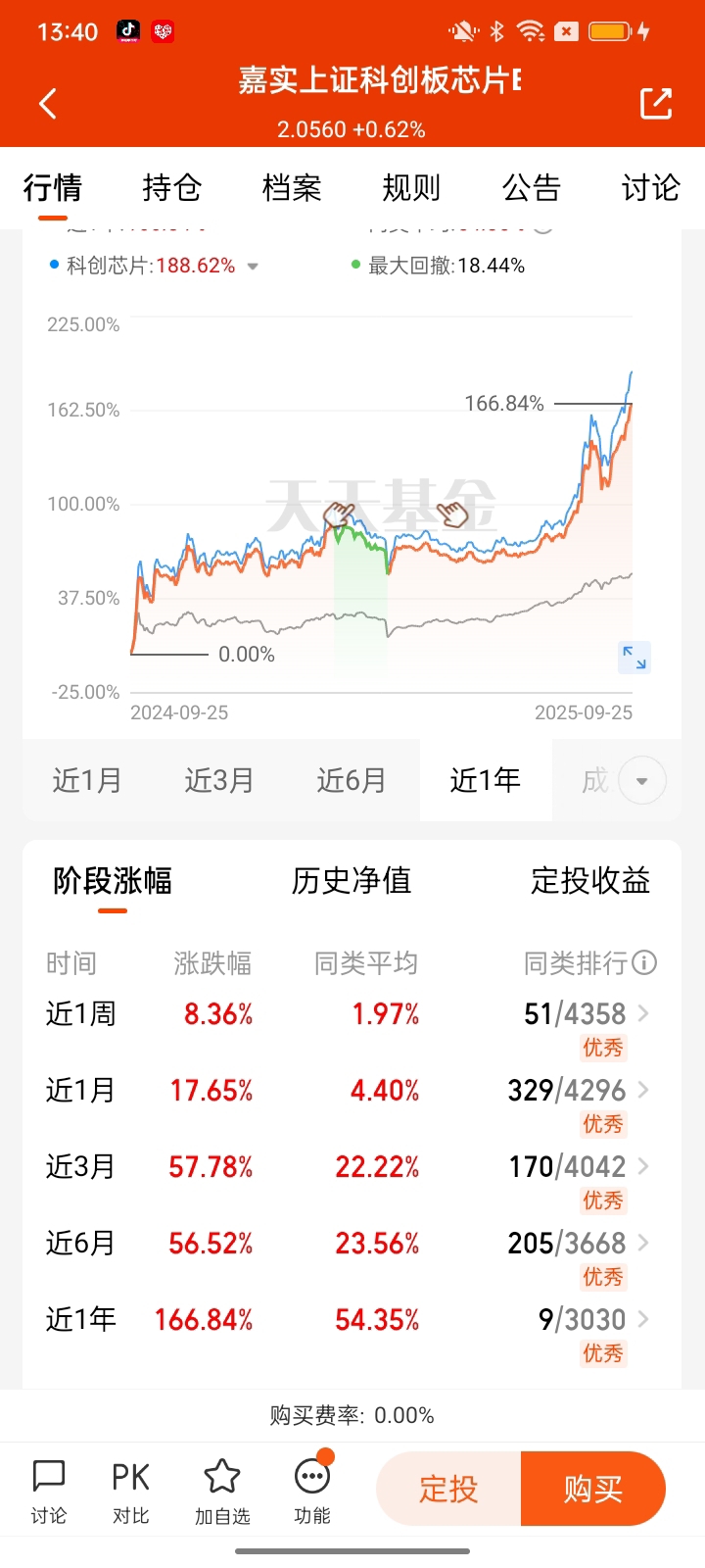 科技实为当今主线,科创板芯片领域带头冲锋,现在国产替代化加速,政策支持利好不断。今日科创板芯片虽有所小跌但是无伤大雅,$嘉实上证科创板芯片ETF发起联接C$ 业绩非常出色,近一年收益166.84%在同类产品中排名第九名列前茅,紧密跟踪上证科创板芯片指数,聚焦半导体材料和设备、芯片设计和制造等环节,具有高波动高成长性特点,适合风险偏好较高投资者,它门槛低费率清晰,如今国产化进程加速市场需求越来越大,趁现在回调期间有想法的可以入手配置一些。