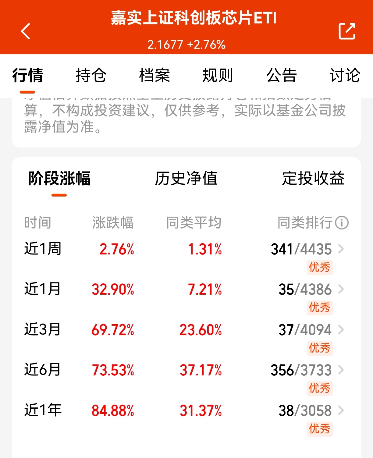 科创芯片回落, 其实今天科技跌是大家的预期。如果不跌的话,没人再敢买进了。所以其实是情绪上大家都希望跌。而且说不定今天跌3个点,明天也能涨回3个点,那就不等了,直接加1000元$嘉实上证科创板芯片ETF发起联接C(OTCFUND|017470)$这只基金弹性比较高, 不光业绩好,费率也是相当低的,买入0申购费,满7天卖出0赎回费,操作起来很灵活, 而AI应用行情后续还是有望持续,那么也会进一步助力芯片板块估值的抬升,芯片长期收益会愈发显著的,回调就是倒车接人的,这个时候的好机会可不要错过了。