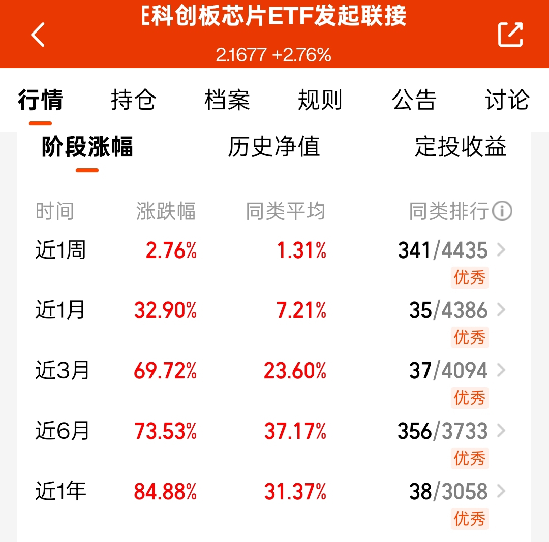 今天科创板芯片有所回调,不过也藏着机会。像我的$嘉实上证科创板芯片ETF联接C$ 挺不错,我的收益率已经超64个点。其紧密跟踪科创板芯片领域,重仓中芯国际、寒武纪等龙头企业,直击半导体设备、AI算力芯片等核心机会 。