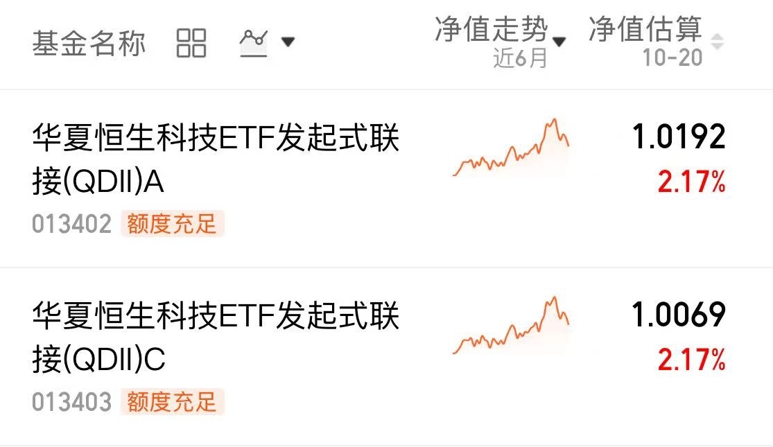今天的港股走势平稳,当前上涨2%+近6个月收益14.30%,$华夏恒生科技ETF发起式联接(QDII)C$趁估值不高慢慢来