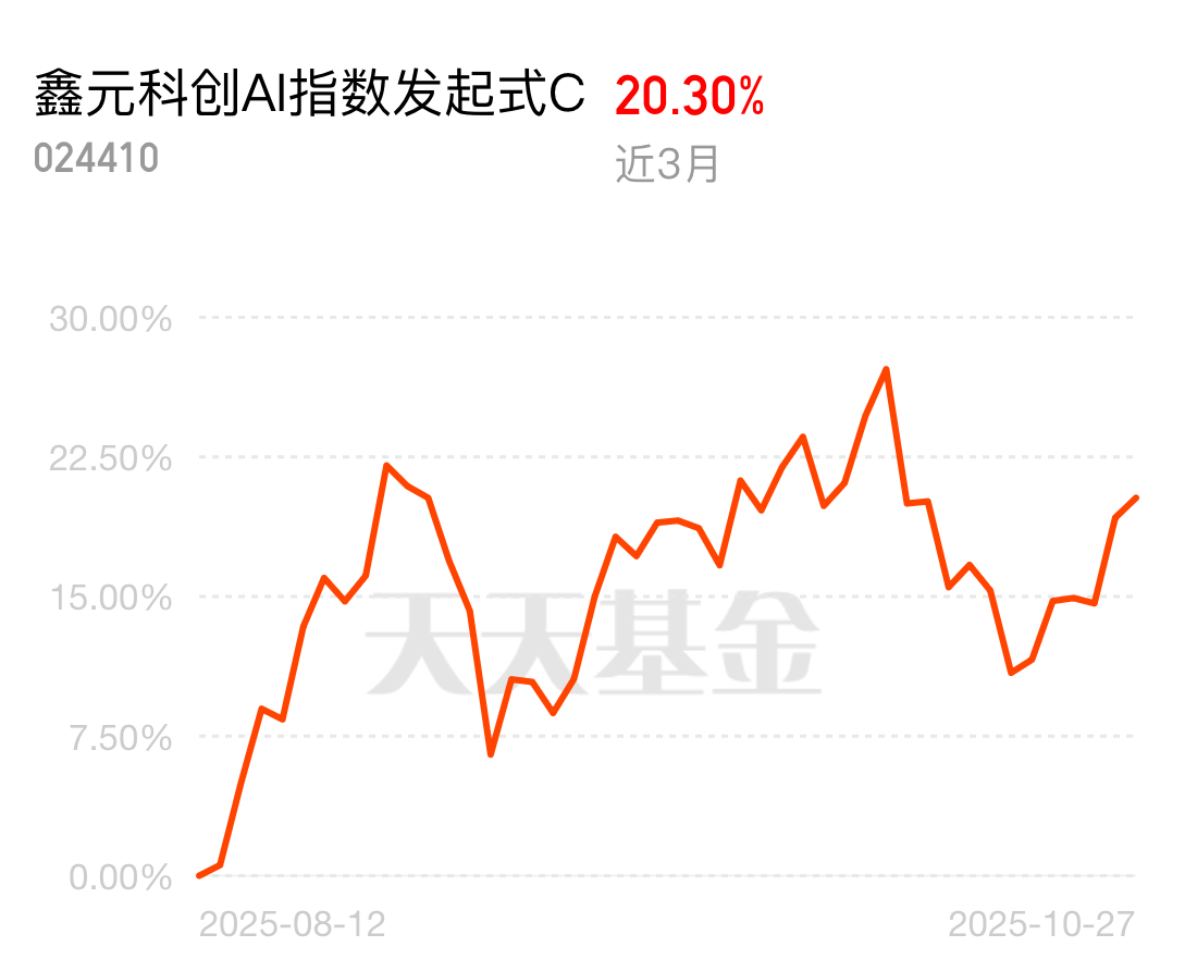 科技牛卷土重来,人工智能是核心!鑫元科创 AI 指数 C 昨晚涨 0.90%,今天估值再冲高。大盘趋势向上,后续空间大,这只基太会跟行情。