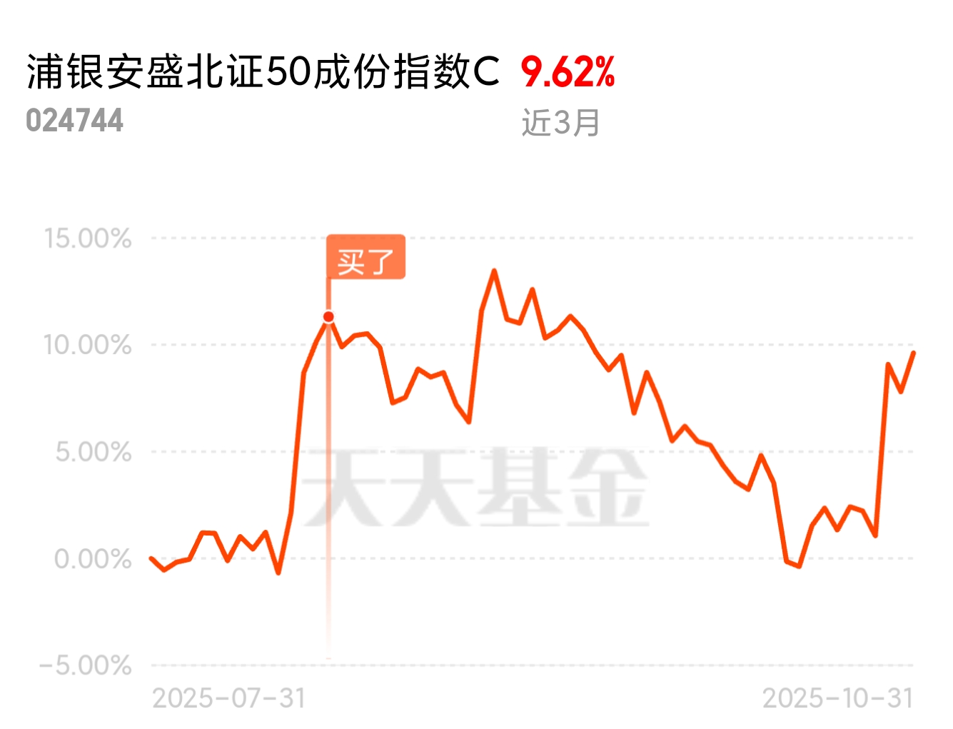 北交所出手了,受北证50ETF加快推出利好刺激,资金快速涌入,拿住浦银北证50,布局起来$浦银安盛北证50成份指数C$