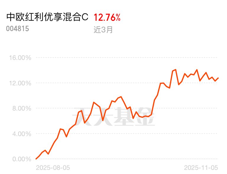最近好多板块忽冷忽热,刚重仓就回调,轻仓就大涨,实在摸不准规律。还好我有中欧红利优享灵活配置混合C,近3个月收益不错,基金经理蓝小康不贪短期收益,聚焦高股息资产,震荡市里能有这表现,比大多数理财强多了。 $中欧红利优享混合C$