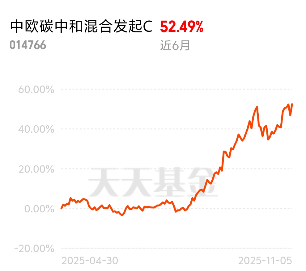 最近市场上不少基金业绩忽好忽坏,让人摸不清规律,很难把握加仓减仓的时机。中欧碳中和混合C的表现就很稳定,聚焦碳中和主题,布局新能源、环保等景气行业,昨天涨了3.8%,近6个月收益52.49%,政策持续发力,未来上涨空间还很大。$中欧碳中和混合发起C$