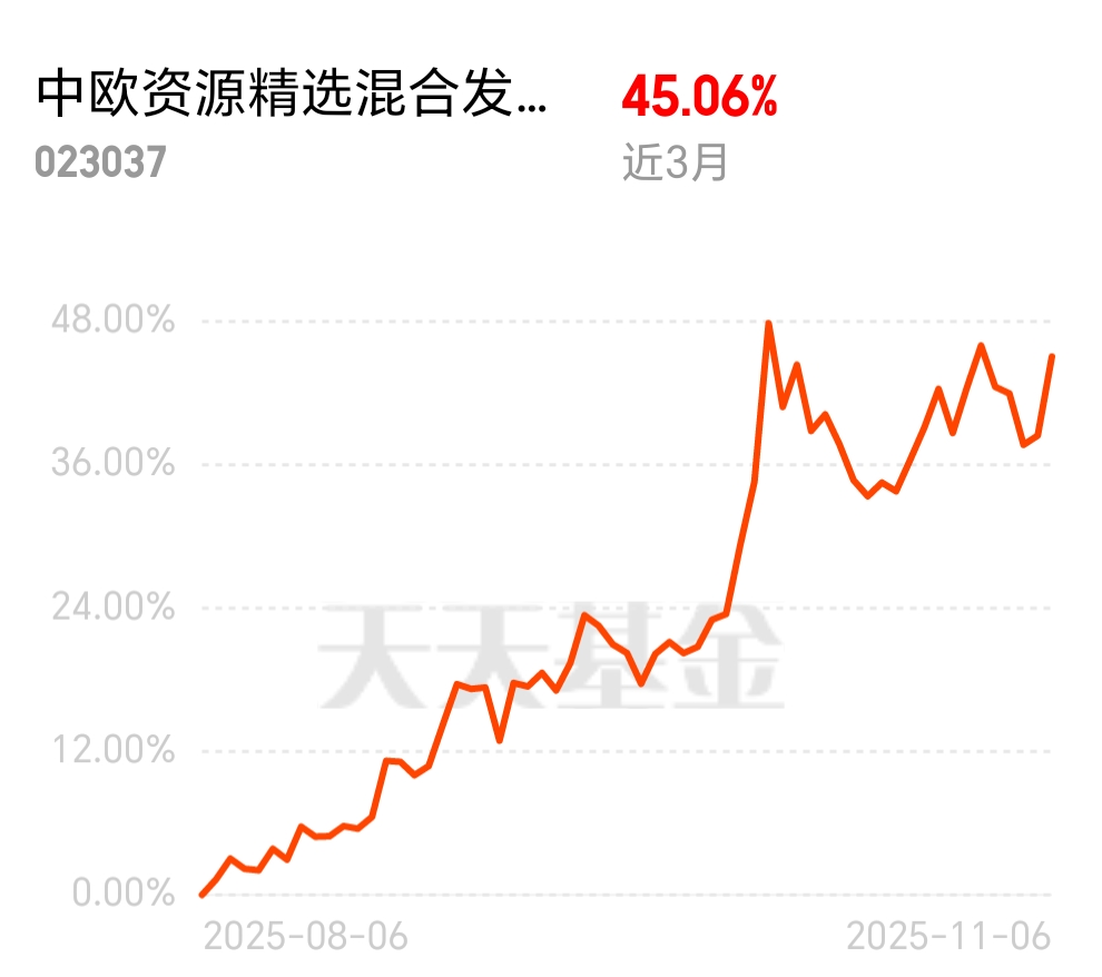 大盘最近跟没了魂似的,慢悠悠往下滑,好多基金都在原地踏步,没什么起色。中欧资源精选混合C却一路高歌,近3个月涨了45.06%,聚焦全球核心资源,顺应矿业智能化转型趋势,基金经理配置全面,关键矿产需求旺盛,收益稳稳的。