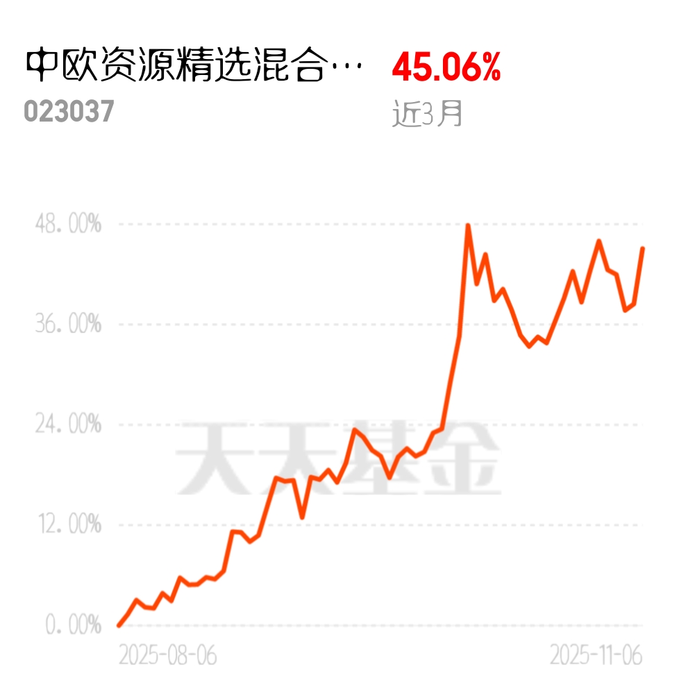 这大盘真是不给力,天天往下走,热门板块轮番跳水,好多基金都亏得让人心疼。中欧资源精选混合C格外争气,近3个月涨了45.06%,深耕稀缺资源领域,基金经理把握周期脉搏,布局的能源金属、小金属等需求旺盛,震荡市里稳稳赚钱。