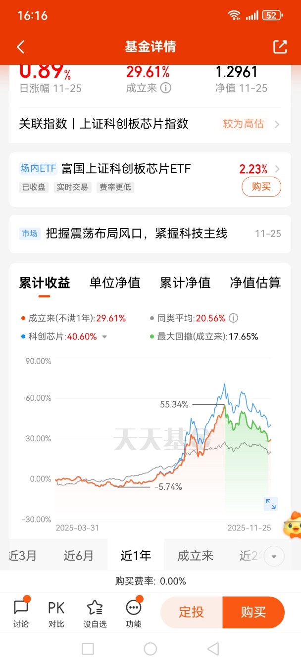 这段时间芯片板块回暖,持有的富国上证科创板芯片ETF联接C近6个月涨了36%,跑