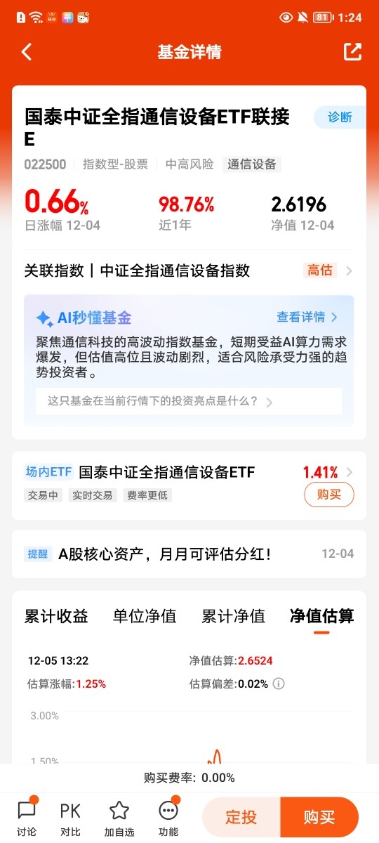 持有嘉实上证科创板芯片ETF联接C,看好芯片半导体,但AI算力需要产业链协同。国泰中证全指通信设备ETF联接E覆盖光模块、服务器等网络基建,与芯片形成硬科技协同。基金近半年涨108%,弹性好,反弹快;老将操盘12年,风浪见得多。估值比近五年三成时间都低,受益于英伟达业绩和AI大模型加速。科技巨头谷歌、阿里发力AI,利好整个产业链。两者搭配,强化AI硬科技布局。