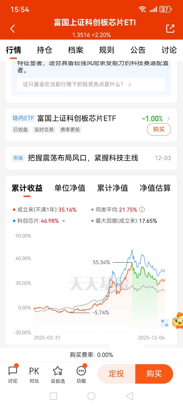 最近嘉实那只芯片基金一直跌,但手里的富国上证科创板芯片ETF联接C近一周涨了2.