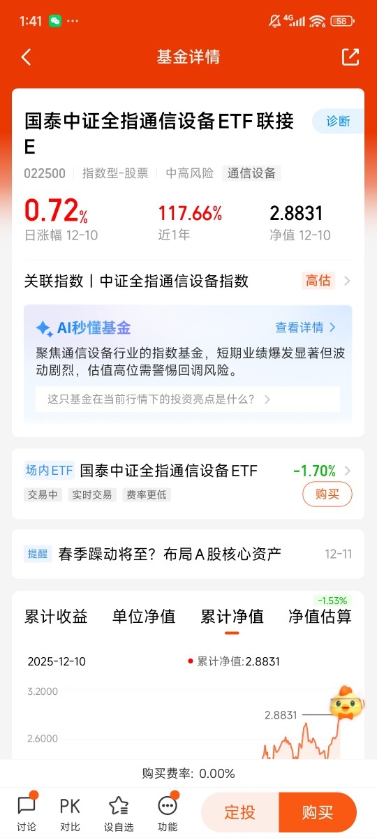 芯片是AI的心脏,而通信设备则是让血液流动的血管。在观察嘉实上证科创板芯片ETF联接C的同时,国泰通信设备的连涨势头引人注目(近一周11%)。其指数超80%为海外算力核心环节,直接受益于英伟达H200获批等事件,与芯片板块形成强协同效应。老将掌舵12年,让这份锐度多了份稳健。