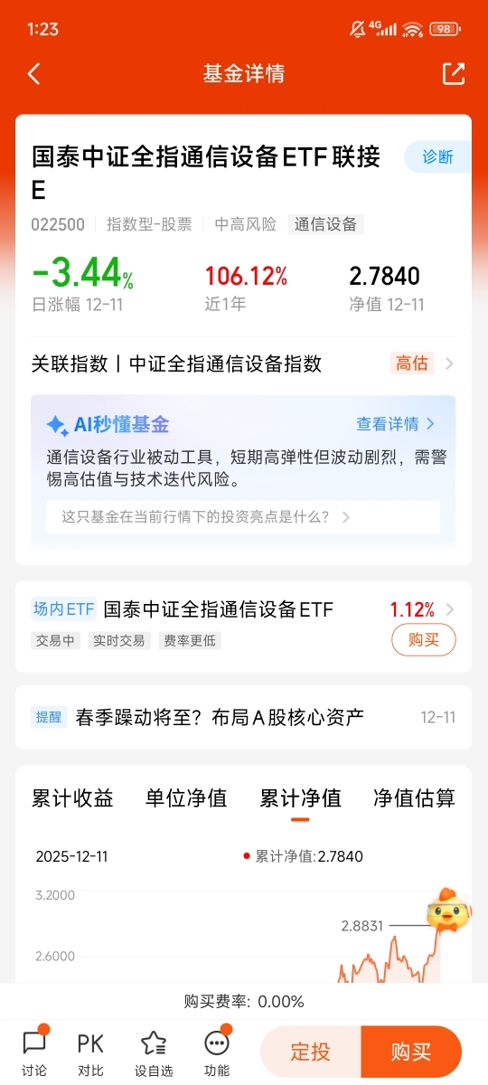 虽然芯片板块短期震荡,但通信设备作为芯片的重要下游,需求持续增长。国泰通信设备E