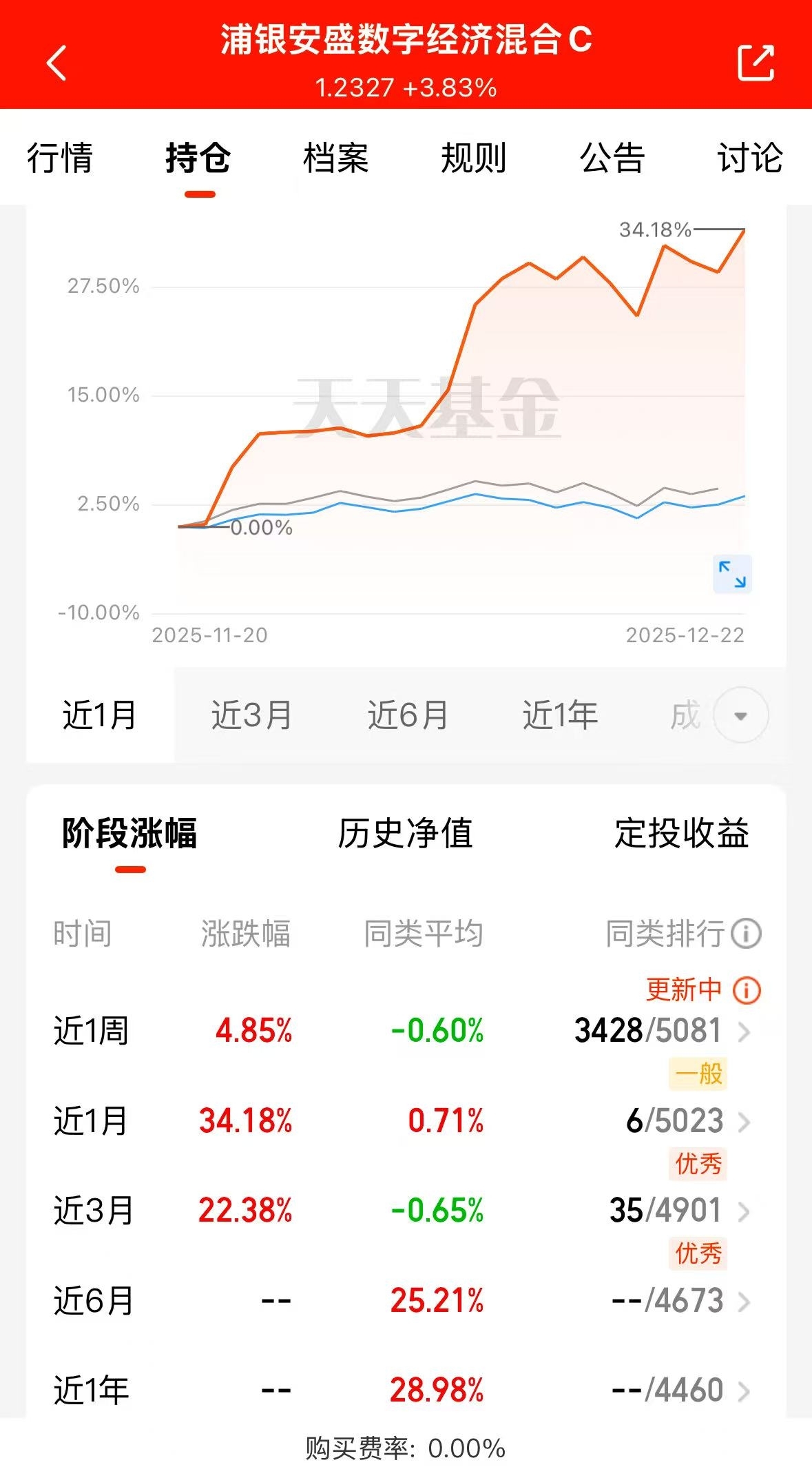 #现货黄金创历史新高!你上车了吗?# 浦银安盛数字经济今天大涨3.83%,调整了几天就大涨回来了!现在CPO趋势很明显了,长期看好,现在抓紧布局$浦银安盛数字经济混合C$
