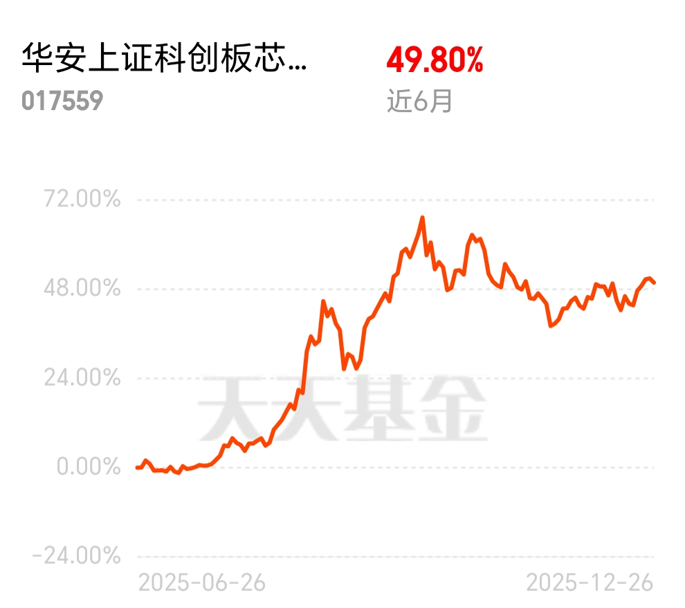 半导体赛道红利能稳拿,$华安上证科创板芯片ETF发起式联接A$ 近 6 月涨 50%,申购费 0 折,小调整后加仓,低位把握收益很划算