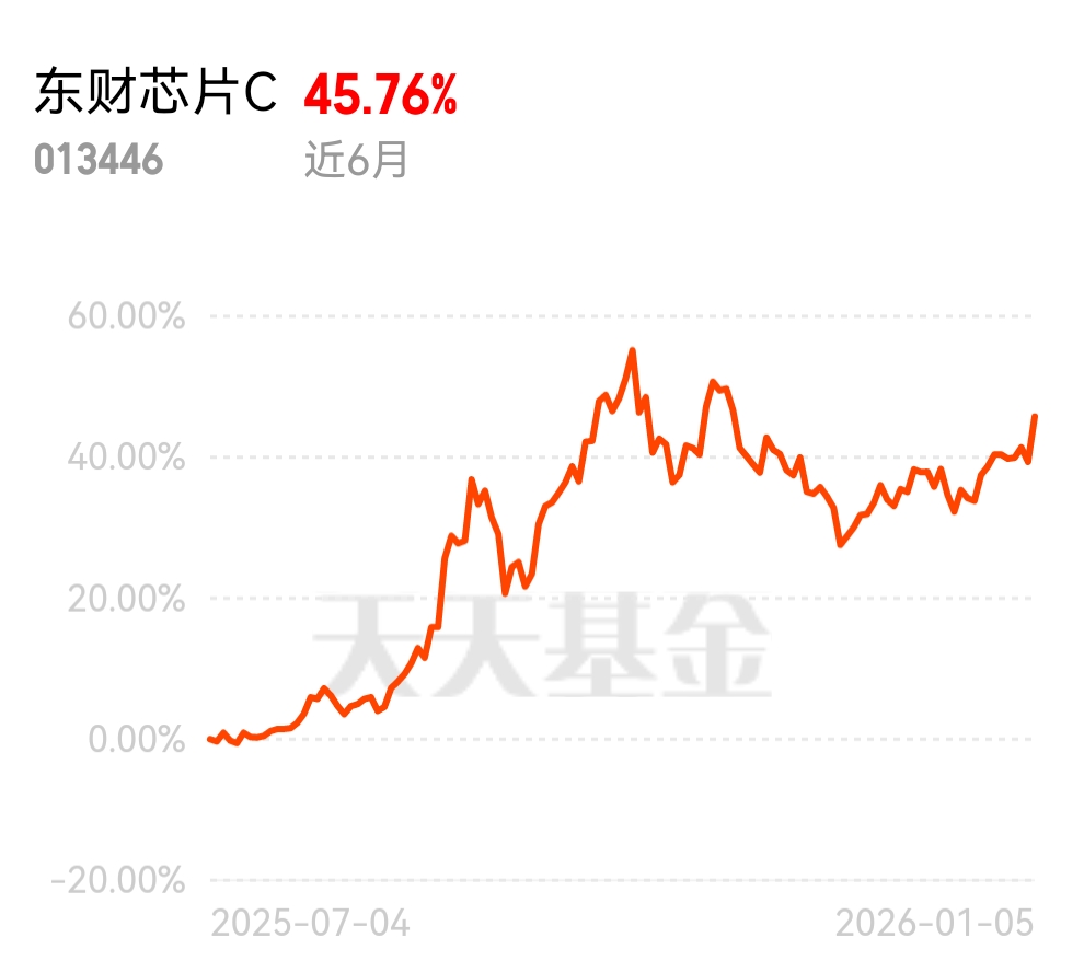 科技牛市里芯片赛道热度居高不下,主线资金都往中证芯片流,东财芯片 C 跟踪这一指数,对技术行情反应更直接,近 6 月 45.76% 的表现,比其他半导体关联基金靠谱多了。$东财芯片C$