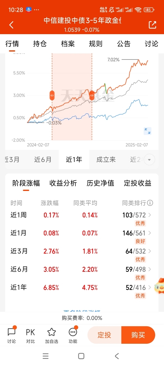 政金债短暂回调,长期还是上行的,趁着行情回调我继续买点了!