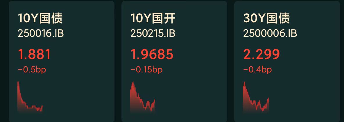 十年期国债收益率:1.881%,-0.5BP(国债收益率越跌,债市越涨)