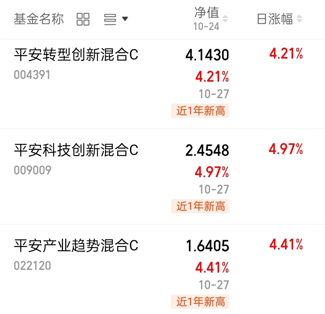 $平安产业趋势混合C$今晚上涨了4.41%,给力