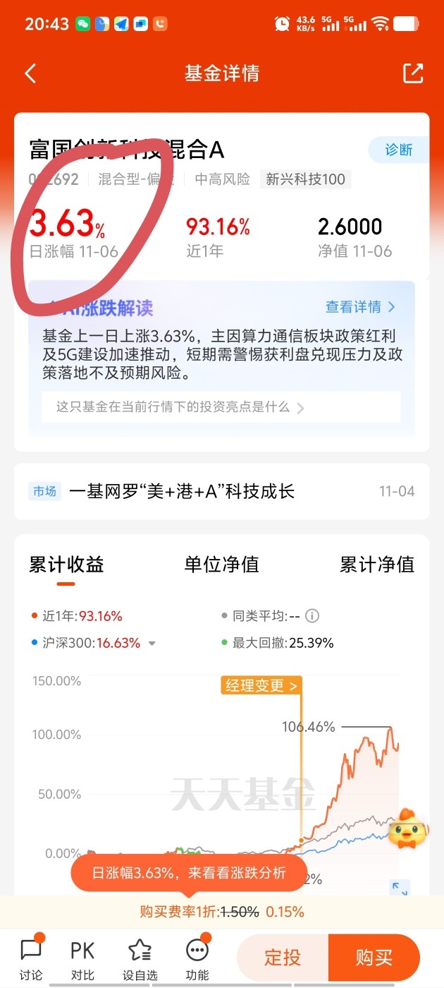 今天富国创新科技上涨3个点多,布局光模块近一个年收益近93%,继续加油