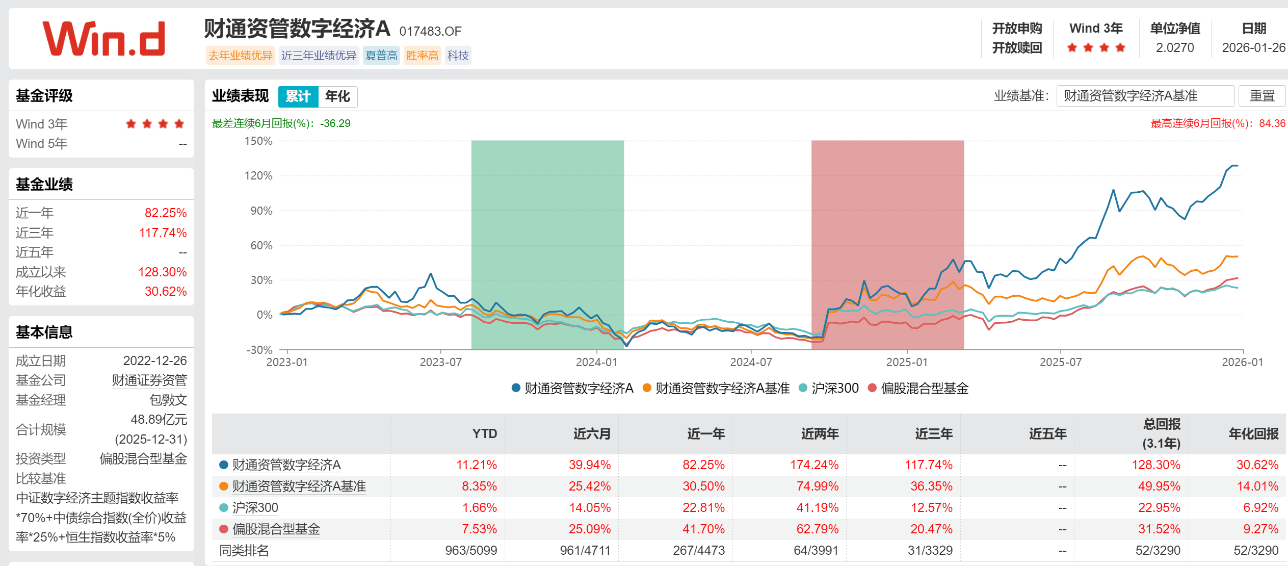 $财通资管数字经济混合发起式A(OTCFUND|017483)$