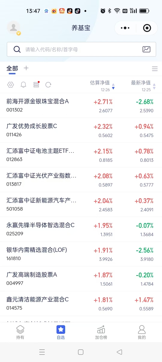 我目前股票和基金的,是维持仓位不动了,属于如今的行情中,不到目标不放手的心态,择机也会再补些仓位的。