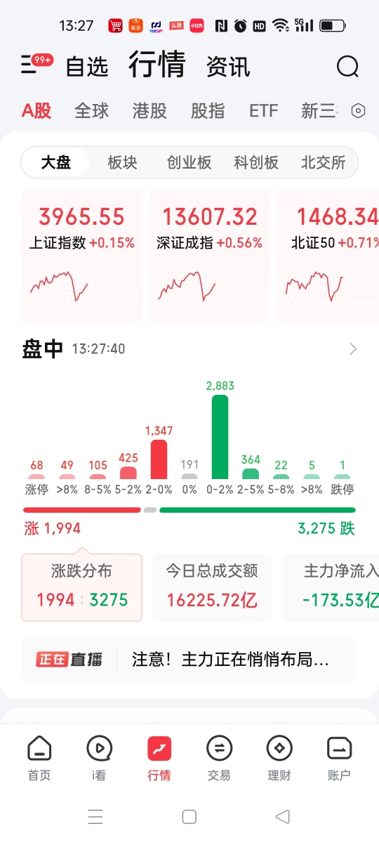 今天上午的沪深股市大部分时间是比较平稳的在运行,但是午前半小时突然有波急速的回落,但是下午开盘还是在回升,说明还是有投资者在逢急打机会,在买进去筹码。