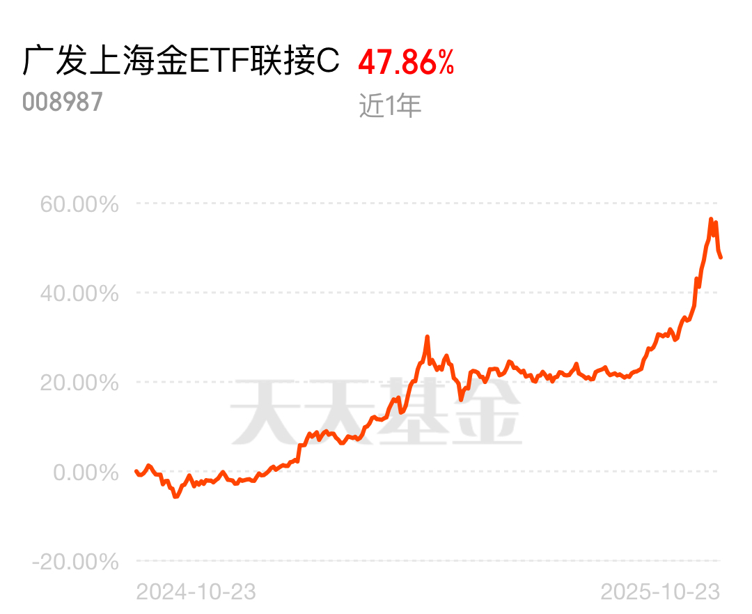 想要一年吃50%涨幅的看过来,$广发上海金ETF联接C$已经很能涨了,基本天天上
