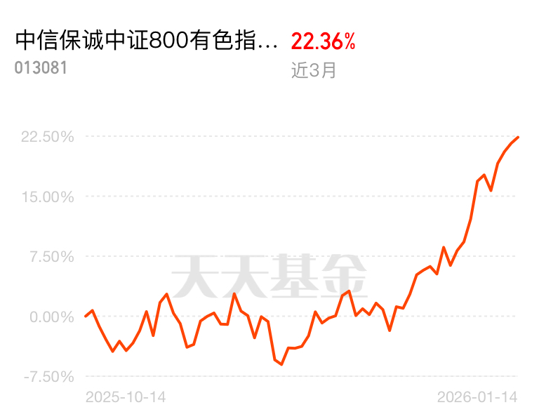 全球流动性宽松持续,利好资源品价格,有色金属作为资源代表受益明显。中信保诚中证 800 有色指数 (LOF) C 稀有金属占比高,近 3 月涨 22.36%,享受宽松货币红利,讨论区福利红包还在,速来参与。$中信保诚中证800有色指数(LOF)C$