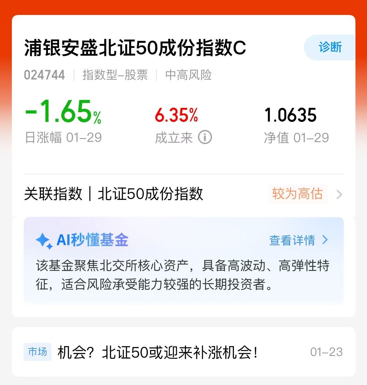 浦银安盛北证50不限购,北交所30cm弹性赛道轻松布局$浦银安盛北证50成份指数C$