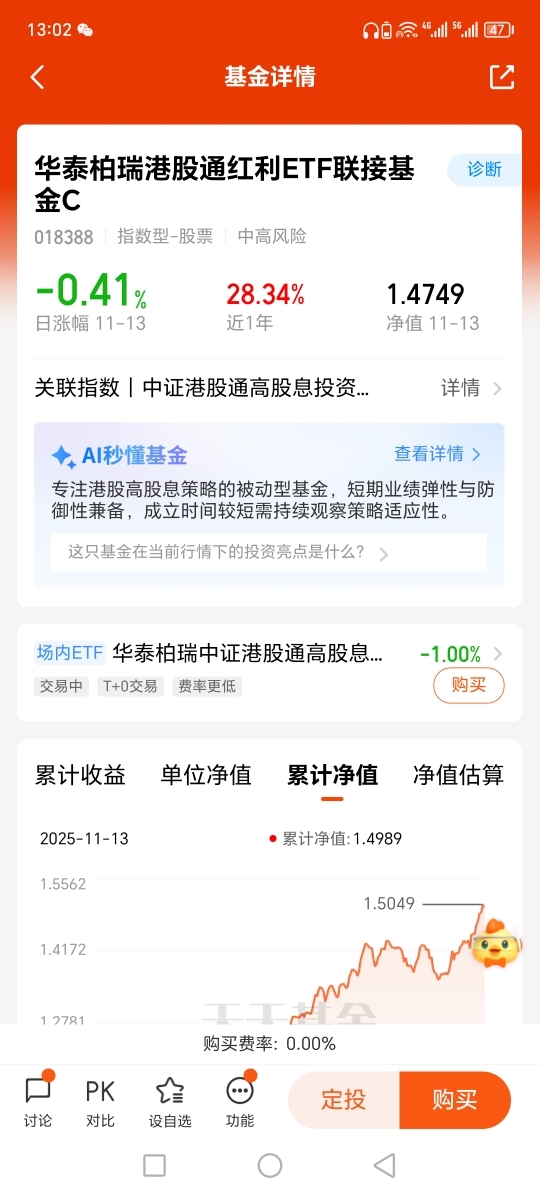港股这阵子跟“抽风”似的,昨天涨俩点今天就能跌回去,心脏不好都扛不住!眼瞅着今年没剩俩月了,咱赚的钱得守住啊!朋友说华泰柏瑞专挑那些分红多的港股,这类票一般家底厚、波动小,就算行情乱晃,它也能稳当点,正好适合四季度揣着收益“求稳”,总比追涨杀跌亏回去强。$华泰柏瑞港股通红利ETF联接基金C$ #黄金又牛起来了!这次你上车了吗?#