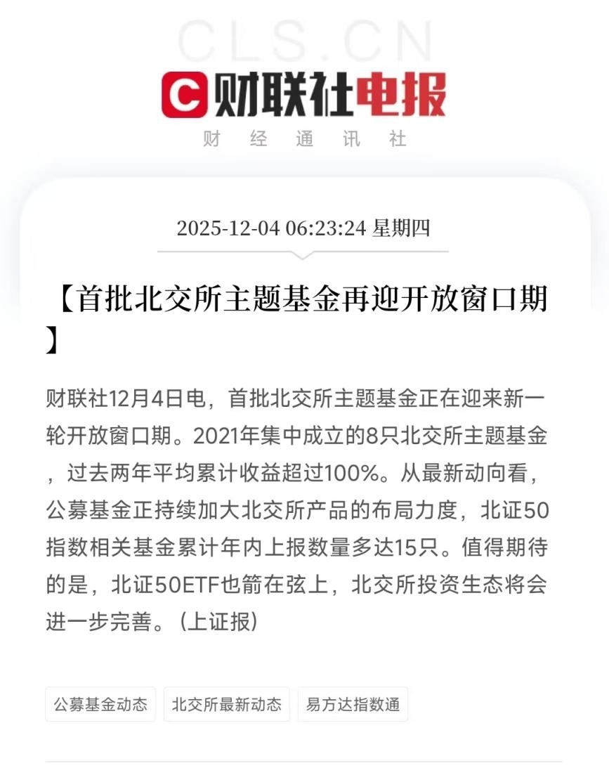 来来来,北证50埋伏一手。小菜是公募持续加大北交所的布局,主菜是北证50ETF未