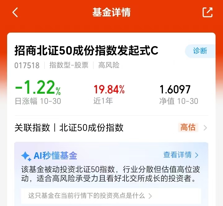 跟踪该指数的$招商北证50成份指数发起式C(OTCFUND|017518)$,持仓覆盖多个热门领域,今天也是水涨船高了呀。当前市场节奏清晰,主力资金持续流入下,北证50向上趋势还是较有确定性的,我也顺势布局起来,希望借这波反弹行情,后续能有不错的收益。#美联储再次降息!12月降息与否难料#