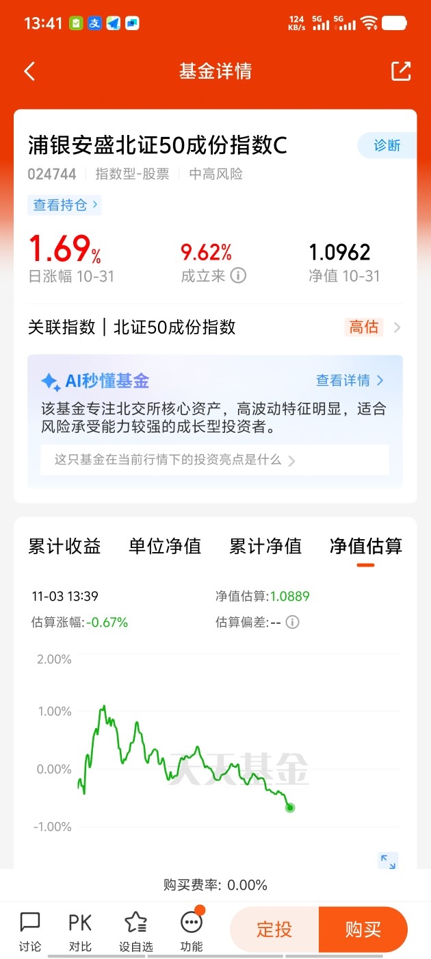 浦银安盛北证50费率低不限额,7天免赎回费,北证50有30cm高弹性,专精特新企