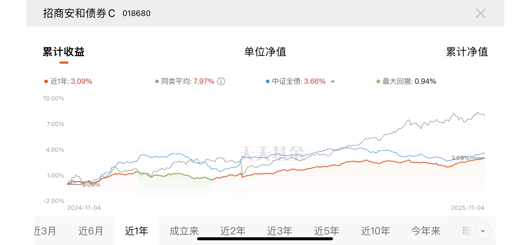 早盘看下来,债市整体偏暖,资金价格略有上升,但没影响大趋势,不少资金都在找低风险标的。招商安和债券C就不错,近6个月收益1.84%,适合稳稳理财。